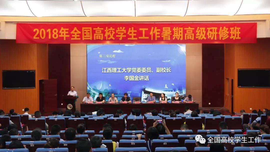 7月13日-17日,2018年全国高校学生工作暑期高级研修班在江西理工大学召开。该校党委书记罗嗣海、副校长李国金,中国高等教育学会学生工作研究分会副理事长兼秘书长、中北大学党委副书记薛智,复旦大学高等教育研究所所长熊庆年,安徽师范大学马克思主义研究中心常务副主任王习胜等出席会议。此次研修精心安排,会议共有专家报告、参观交流、分组研讨、素质拓展、现场教学、经验交流等环节。