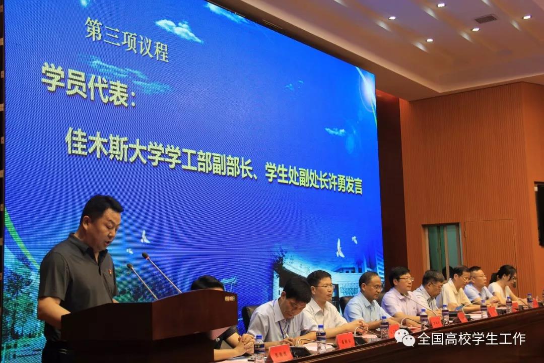 佳木斯大学学工部副部长、学生处副处长许勇老师作为学员代表发言,他代表全体学员表示对此次研修机会的感谢以及学员一定严守研修纪律、认真学习。
