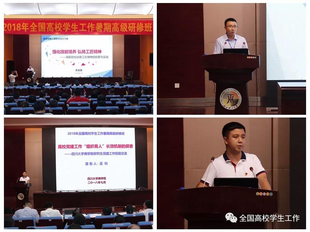 16日下午,5所高校进行了经验交流,参与交流的代表分别是赣南医学院团委书记连璐,佳木斯大学学工部副部长、学生处副处长许勇,江苏大学学工处思想政治教育科科长李宏刚,陕西铁路工程职业技术学院道桥工程系党总支书记李昌锋和四川大学商学院党建办公室主任巫科。