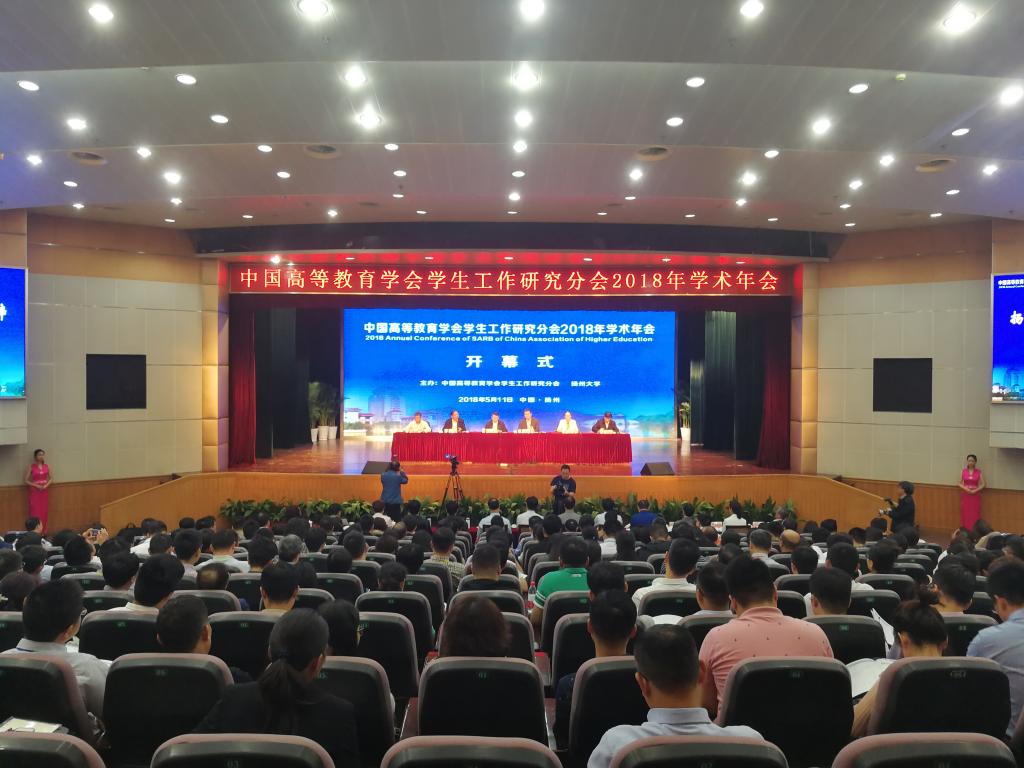 5月10日-12日,由中国高等教育学会学生工作研究分会和扬州大学联合主办的中国高等教育学会学生工作研究分会2018年学术年会在扬州顺利召开。中国高等教育学会学生工作研究分会理事长、中北大学党委书记李忠人,中国高等教育学会学生工作研究分会副理事长兼秘书长、中北大学党委副书记薛智,江苏省教育厅党组成员、副厅长苏春海,扬州大学党委书记姚冠新,中国高等教育学会学术部主任高晓杰,中国高等教育学会学生工作研究分会副理事长、扬州大学党委副书记叶柏森等出席开幕式。此外,来自全国26个省市自治区136所高校的近400名领导、专家、学者和一线学生工作者参与会议。