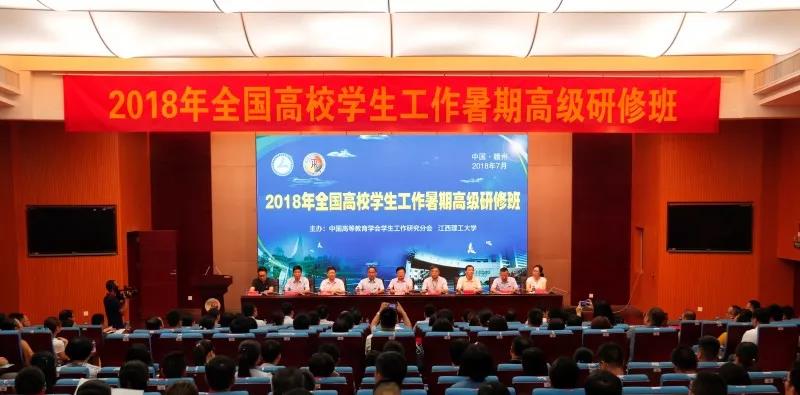 7月14日上午,2018年全国高校学生工作暑期高级研修班在江西理工大学逸夫楼学术报告厅开幕。江西理工大学党委书记罗嗣海,中国高等教育学会学生工作研究分会副理事长兼秘书长、中北大学党委副书记薛智,复旦大学高等教育研究所所长熊庆年,安徽师范大学马克思主义研究中心常务副主任王习胜,江西理工大学学生工作部(处)部(处)长余育新,洛阳师范学院党委学生工作部(处)部(处)长秦西京,赣南医学院团委书记连璐,徐州工业职业技术学院学生工作部(处)部(处)长张海波出席开幕式现场。来自全国76所高校的330余名学生工作战线的领导、专家、学者齐聚一堂,共同参加了本次研修班。开幕式由江西理工大学副校长李国金主持。